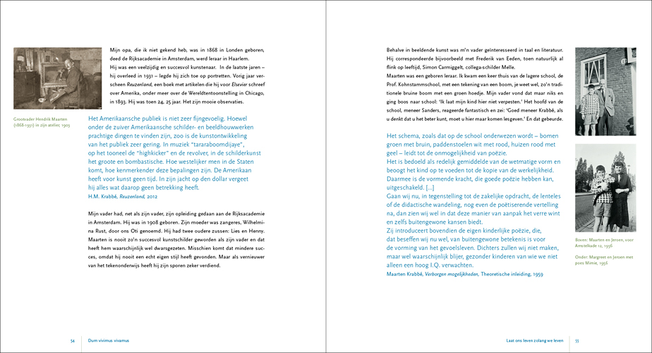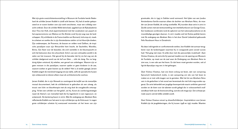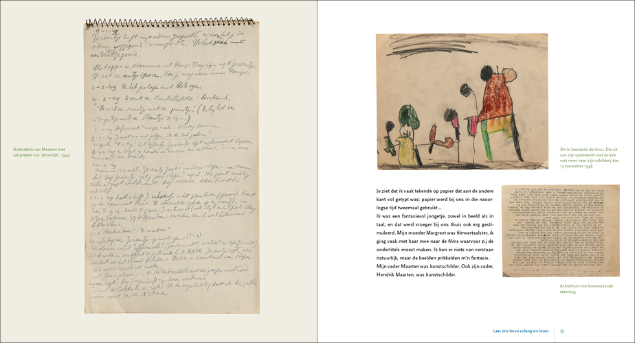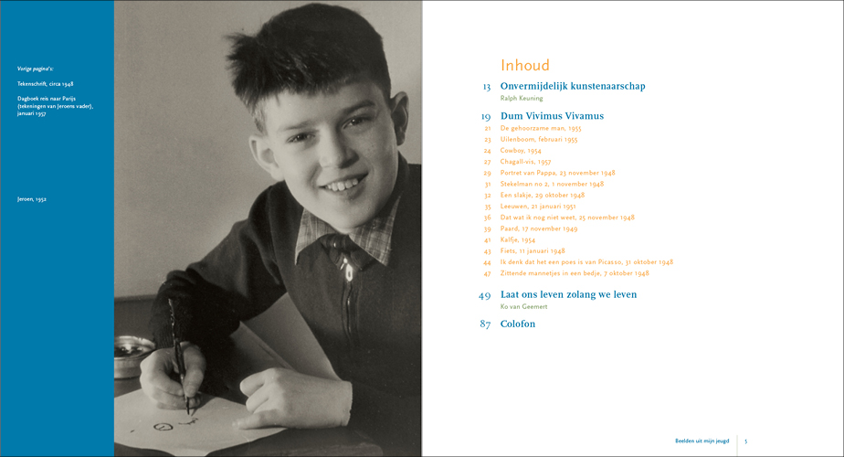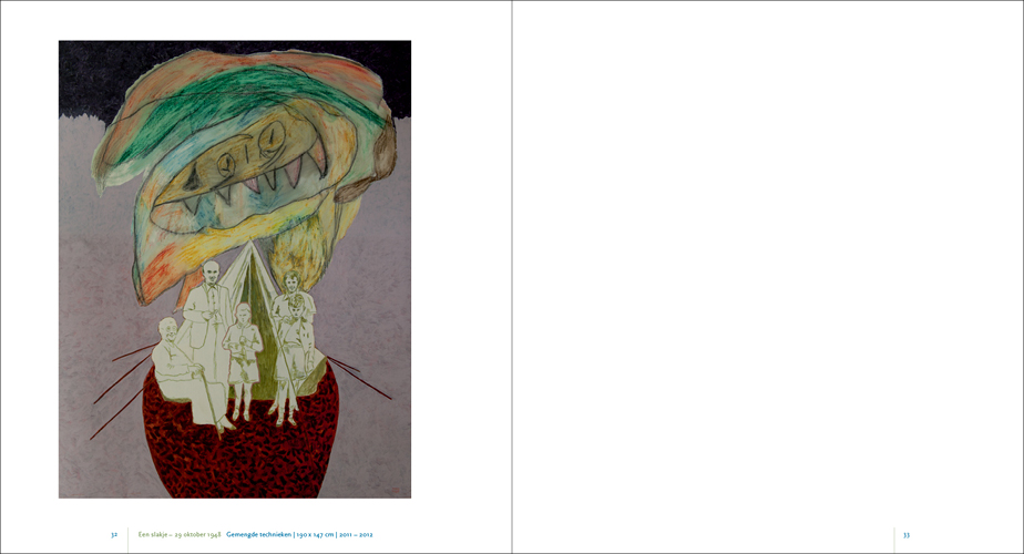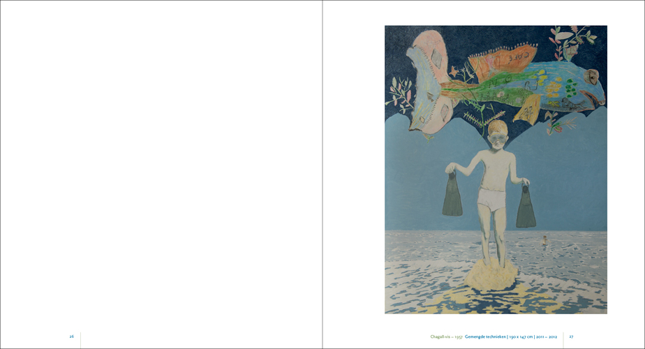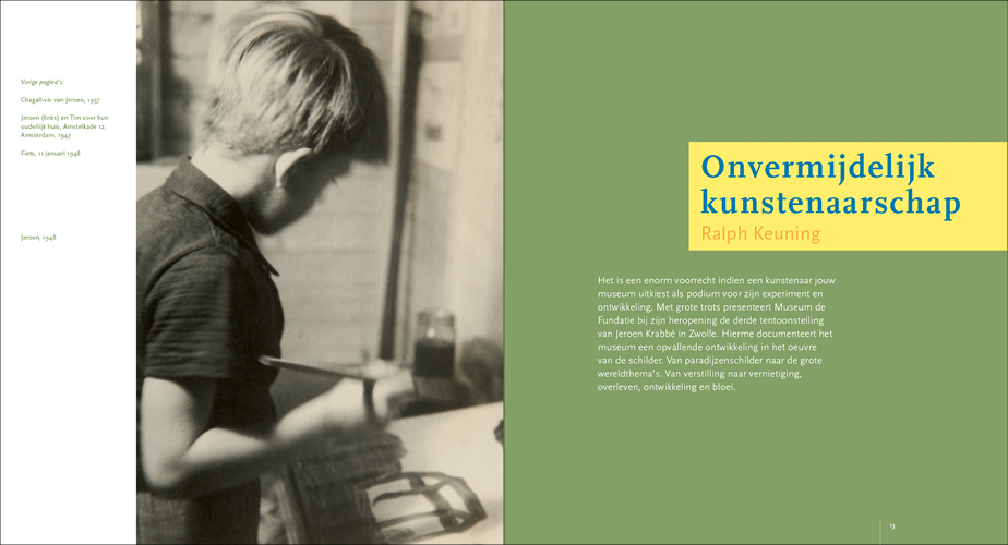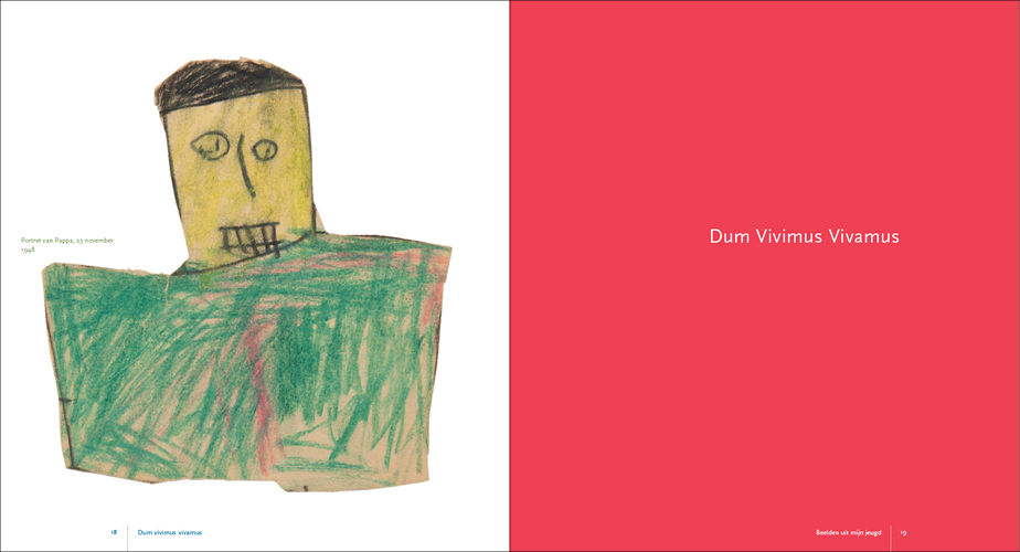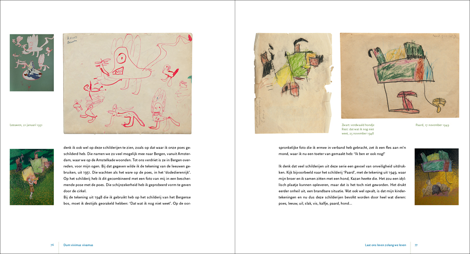 This series of paintings forms, as it were, Krabbé’s response to the nine paintings he made prior to these about his grandfather who was murdered in the Second World War: The fall of Abraham Reiss for which we also designed the catalogue. The children’s drawings, the photos, and of course the many memories in his mind, manifested themselves in what can perhaps best be described as an autobiography of his youth in the form of paintings. In 2017 Jeroen asked us to design the catalogue Het Late Licht and in 2019 we designed Gedroomde Paradijzen.