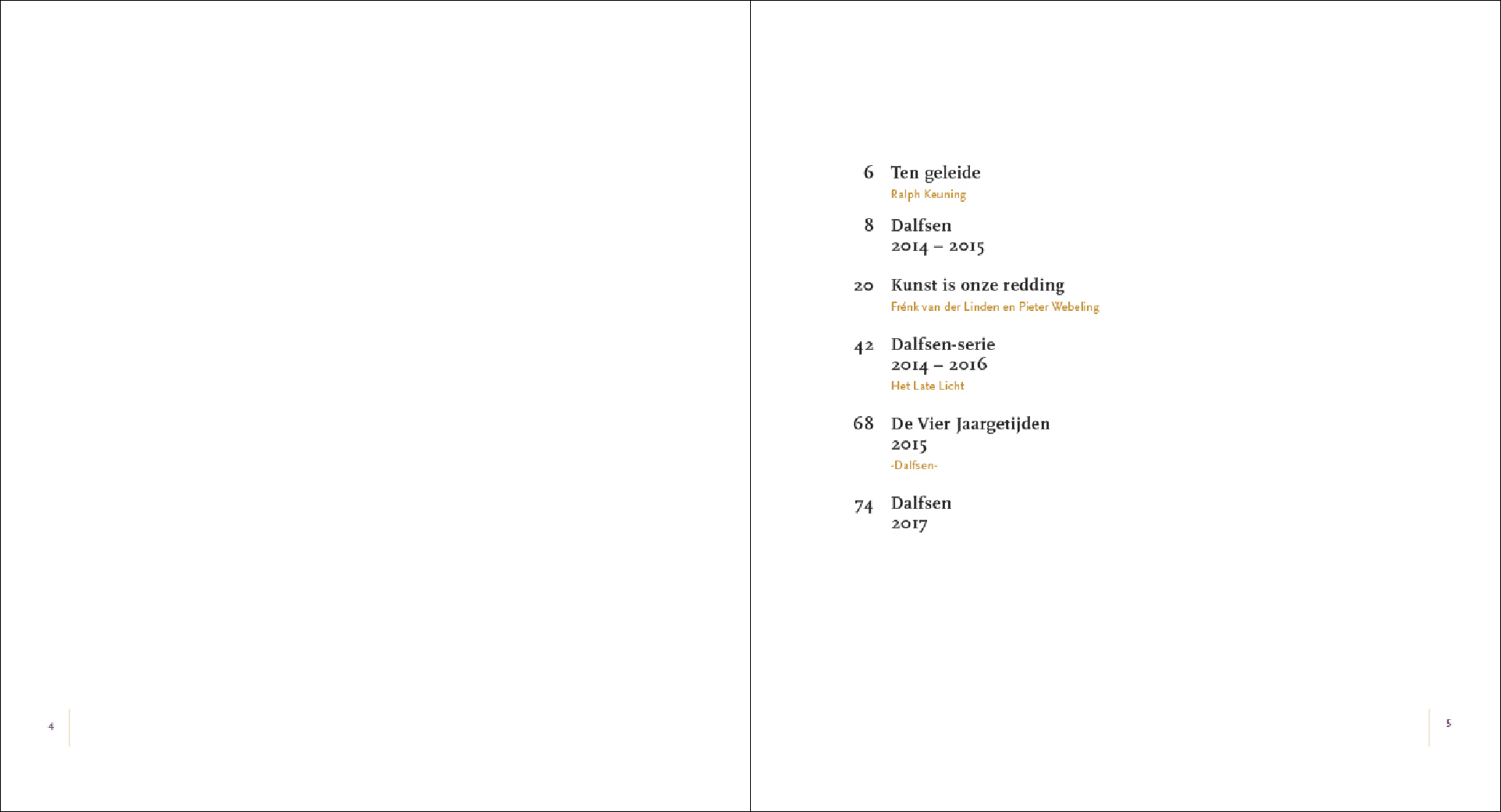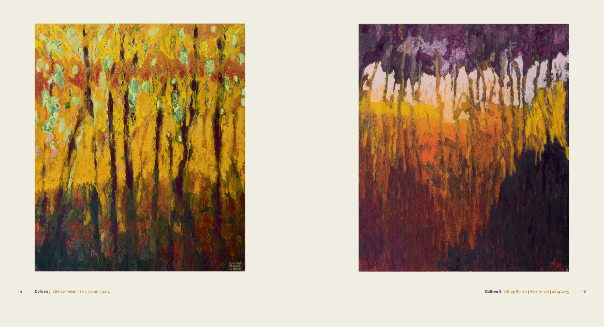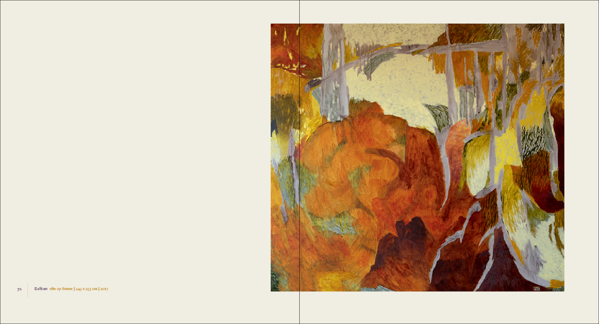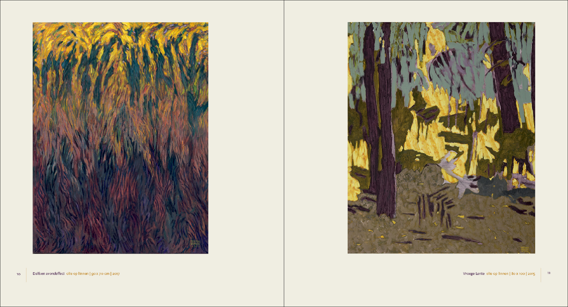 For Het Late Licht Krabbé returns to the landscape genre by painting the surroundings of his house in Dalfsen. But his approach has changed. The idyllic paradises of previous years are replaced by intense manifestations of light and colour. In 2019 we designed Gedroomde Paradijzen, the fourth catalogue in this series.