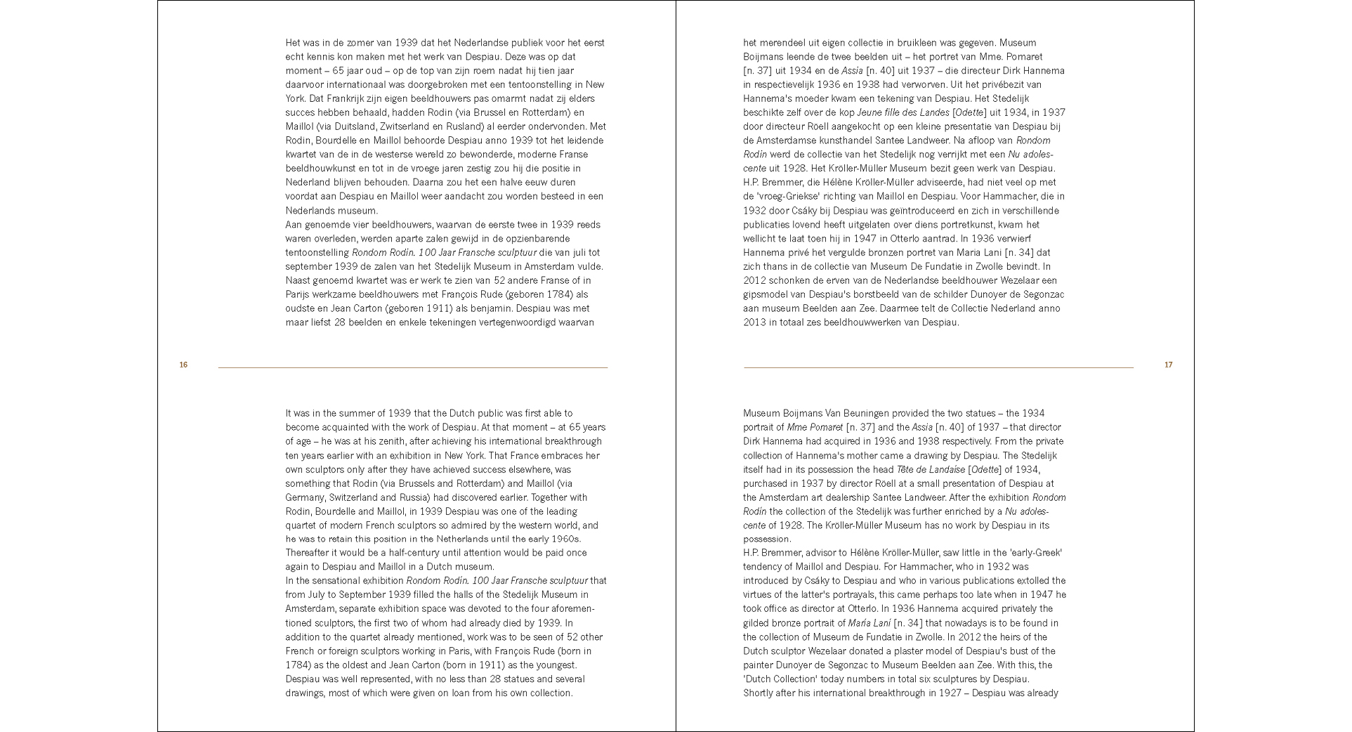 Together with Rodin, Bourdelle and Maillol, Despiau was in 1939 a member of the leading quartet of modern French sculptors so admired by the western world. A position that he was to retain until the early 1960s. It was to be a half-century before attention was again devoted to Despiau and Maillol in a Dutch Museum.